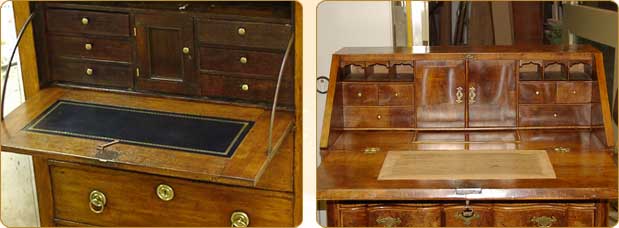 | Leather & Antique restoration. Specially for the European mainland and England, Desktopleather provides a unique restoration service. Available for traders and private clients. • Restoring/ reparing of wooden desk's, bureau's and tables.( underlying frames, panels, side-faces) • Applying new leather writing surfaces with goldleave tooling on various types of furniture. • Special sizes and shapes of desktopleathers (through paper/ cardboard mall's) Product overview Deskleathers Antique furniture restoration: • Complete restoration of antique furniture is possible. • High standard workshop and craftmanship. • 20 years of experience • Prices on demand/recalculation